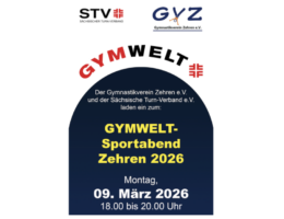 Der Gymnastikverein Zehren e.V. und der Sächsische Turn-Verband e.V. laden ein zum GYMWELT-Sportabend Zehren 2025 Dieser findet am Montag den 03.März 2025 18:00 Uhr bis 20:00 Uhr im Sportzentrum Schieritz statt. Diesmal am Rosenmontag, gern im Kostüm 😉 Offen für alle (Kinder ab 5 Jahre), kostenfrei Weitere Infos finden Sie in dem Flyer. Schau Dir …